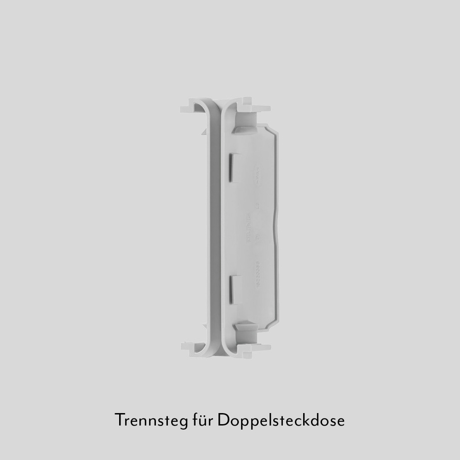 Der Trennsteg im Aufputz-Programm WG 800 von JUNG macht das möglich. Das spart Zeit und Ressourcen bei der Montage. Klassischer Anwendungsfall für den Trennsteg ist der Wäscheraum. Waschmaschine und Trockner sind leistungsstarke Verbraucher. Beide Geräte müssen daher auch einzeln abgesichert werden. Die nötigen getrennten Stromkreise können in einer SCHUKO® Steckdose 2-fach mit Trennsteg installiert werden. Damit erfüllt die Doppelsteckdose normative Anforderungen, Stromkreise von Verbrauchern mit hohen Leistungen zu separieren.